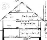 schwarz markiert, Podesttreppe zum Keller und Dachgeschoß; Pfettendach 40